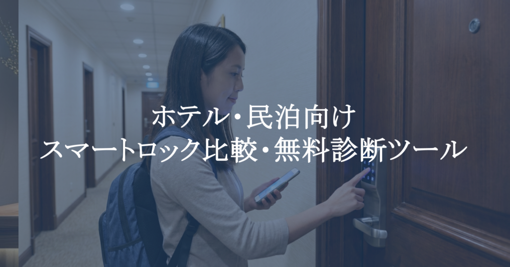 本ページでは、ホテル・民泊向けに導入実績のある主要スマートロックを比較するとともに、施設条件に応じて最適な製品がわかる無料診断ツールをご紹介します。