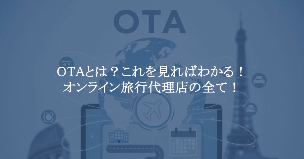 OTAとは、Online Travel Agentの略称です。オンライン上にのみある旅行代理店のことを指しており、じゃらんや楽天トラベル・Booking.comが代表的なOTAです。