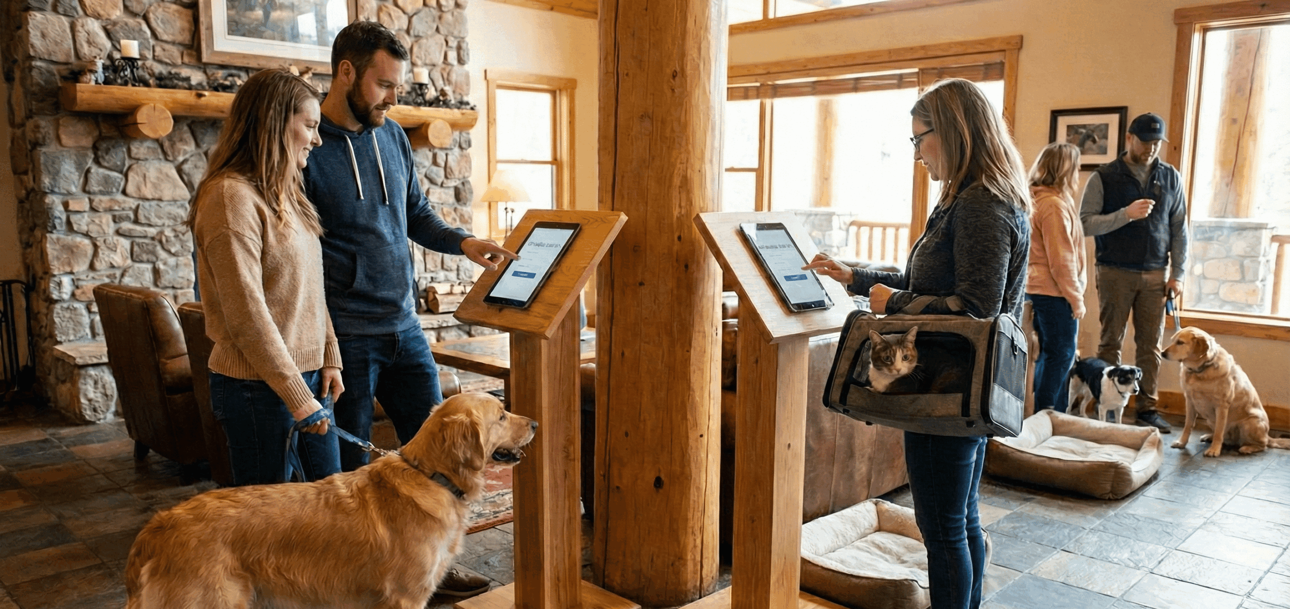 チェックイン・管理システム(ペット同行専用動線、ルール明示)