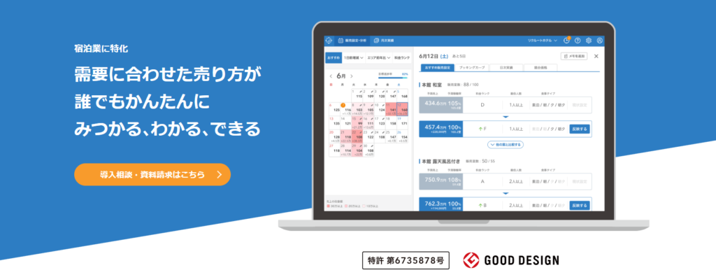 2019年にはグッドデザイン賞を受賞していることからもユーザビリティーには定評があります。またメール通知によって予約の変動状況をレポートしてくれる機能があるため、価格設定に必要な些細な変化も見逃さない工夫が施されています。